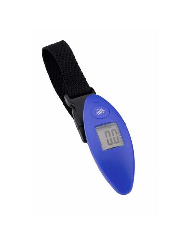 Práctica báscula digital para equipaje en vivos colores. Con pila de botón incluida y peso máximo de 40kg.