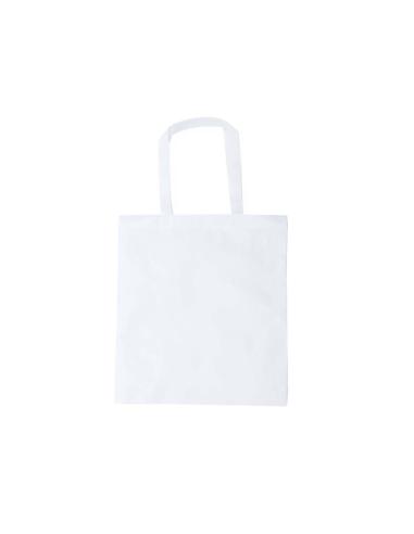 Bolsa de non-woven de 80g/m2 en color blanco especialmente diseñada para marcaje en sublimación. Con asas largas de 60cm y acabado cosido.