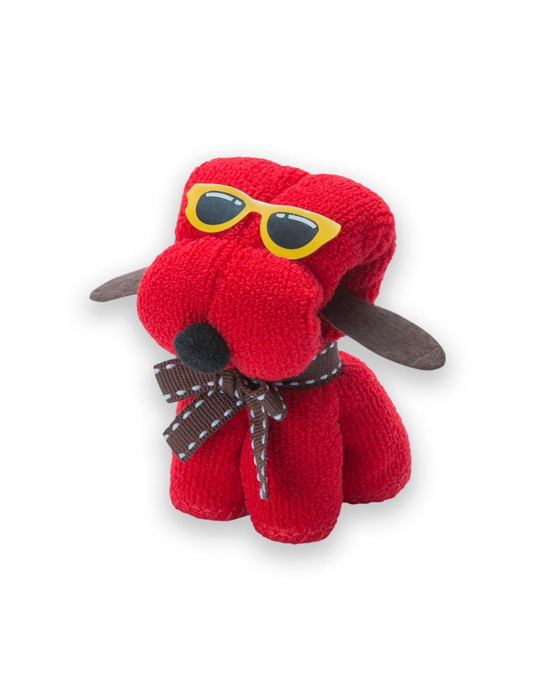 Divertida toalla perro en absorbente y suave microfibra de 310g/m2 en vivos colores. Presentada en estuche de PVC transparente de diseño.