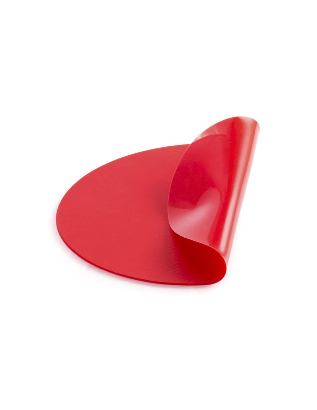 Alfombrilla de silicona de alta calidad, de diseño circular con cuerpo en vivos colores y base antideslizante. Presentada en atractiva bolsa de diseño con refuerzo de cartón.