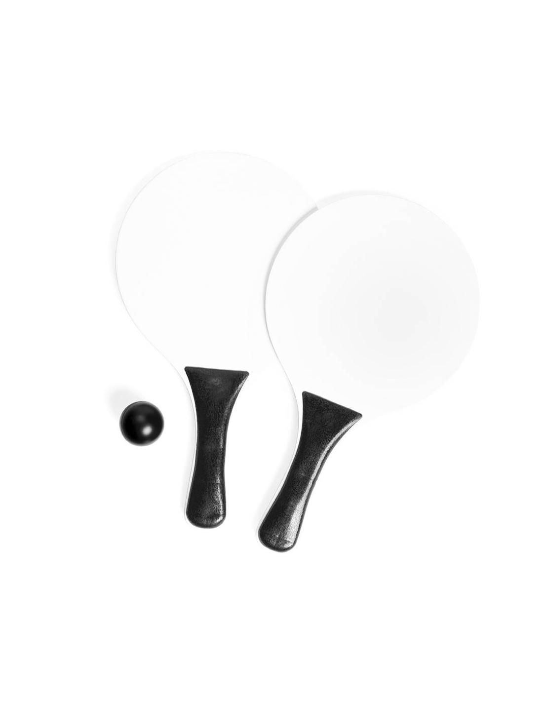 Par de palas de playa en madera natural con mango reforzado en variada gama de vivos colores. Presentadas en bolsa redecilla con pelota a juego.