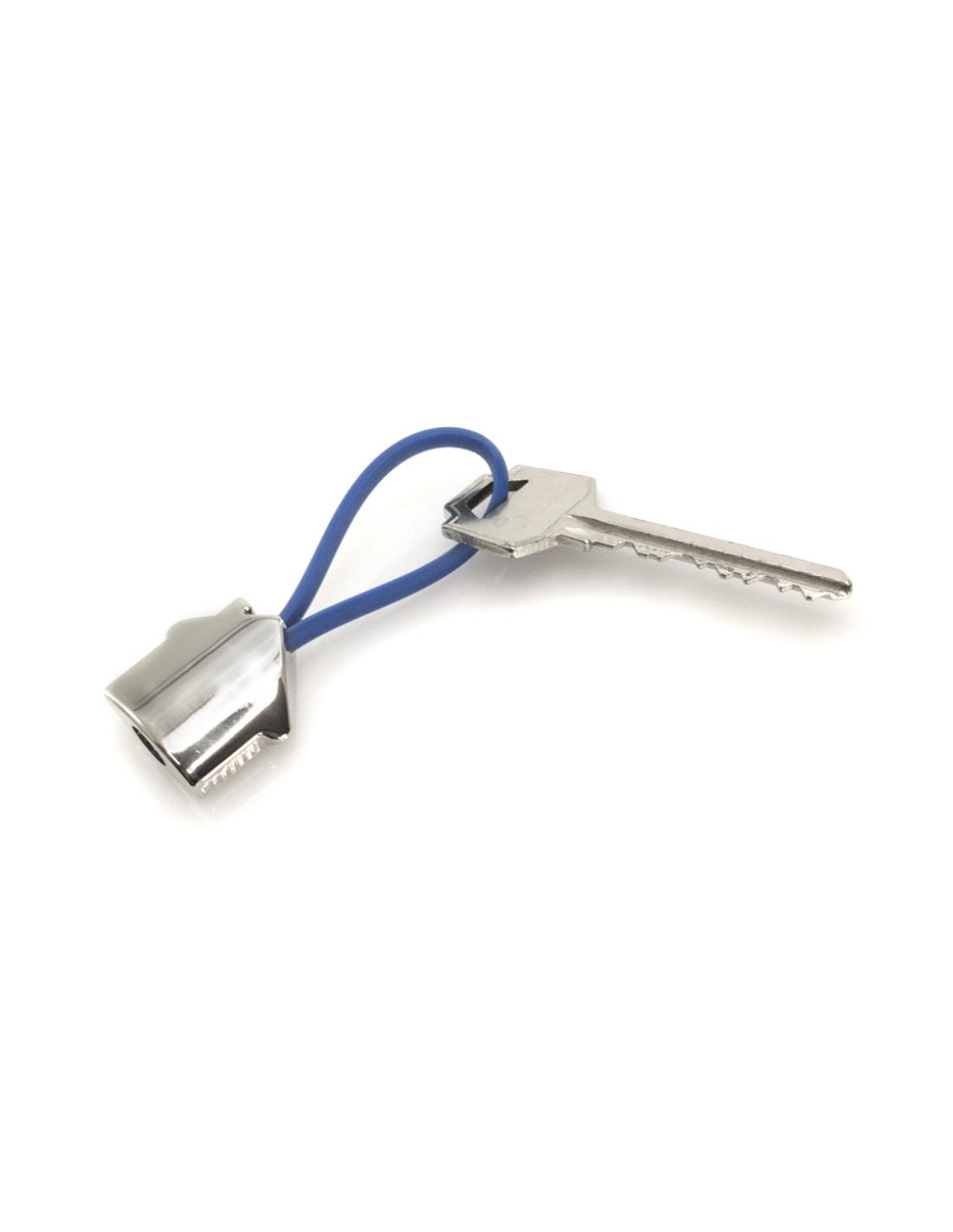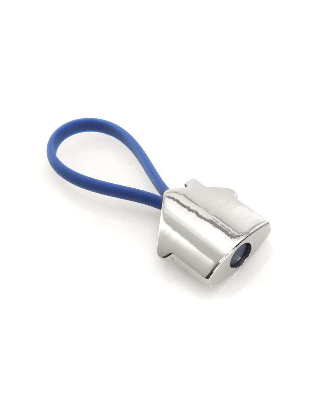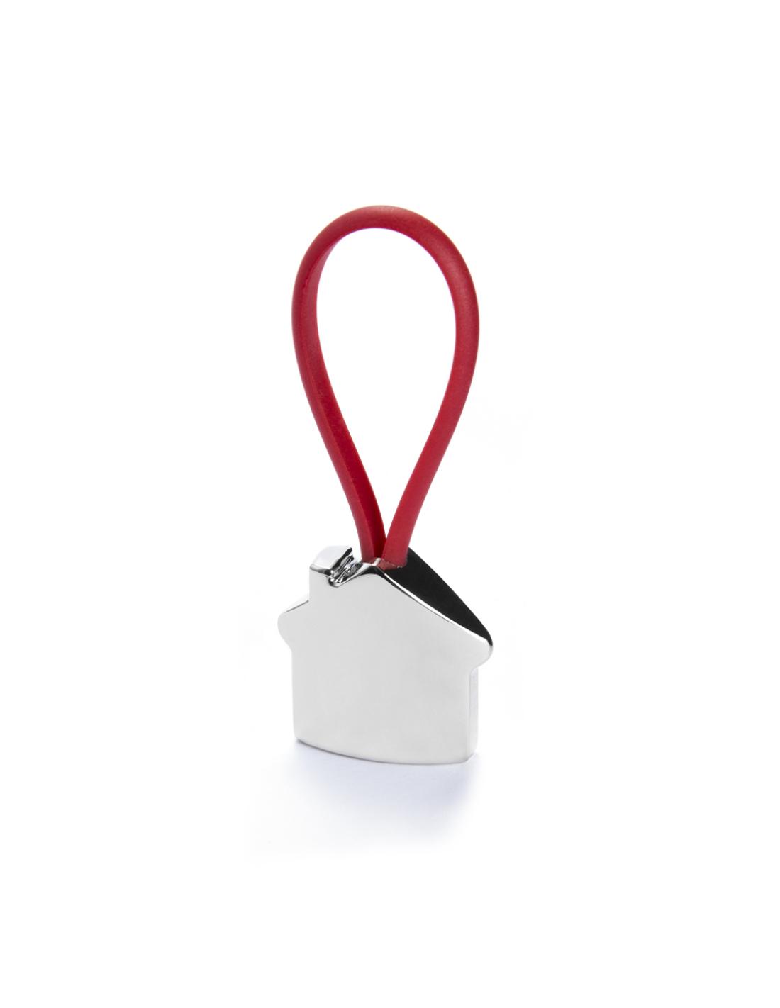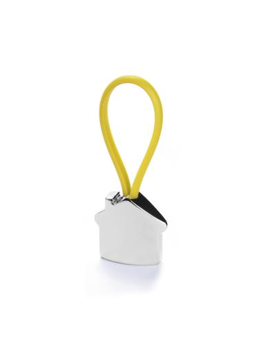 Llavero metálico en divertido diseño 3D de casa. Con cinta de goma en variados y vivos colores.
