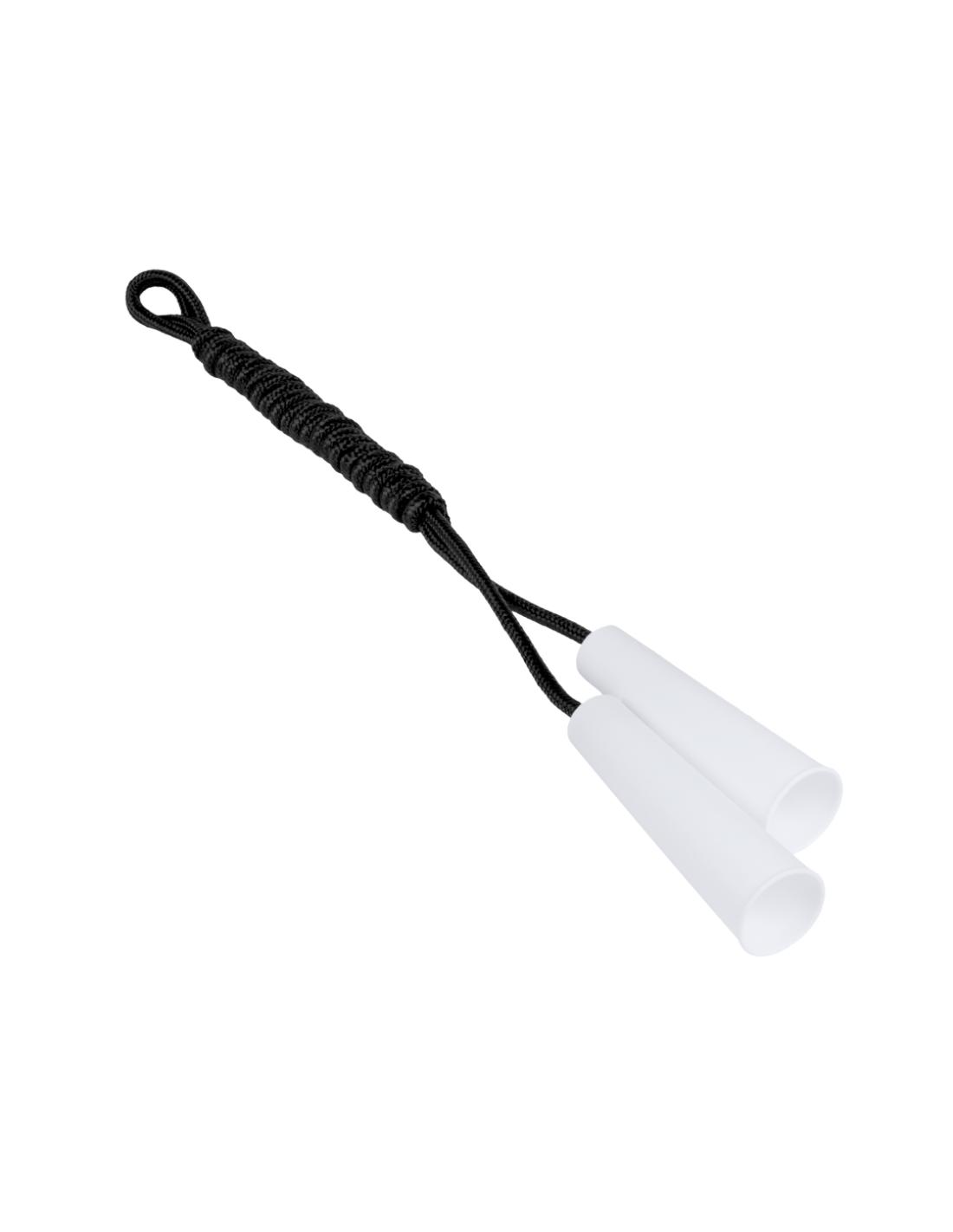 Comba con cuerda extra larga de 240cm de largo en vivos colores y con cómodos mangos de sujeción en color blanco. Presentación plegada.