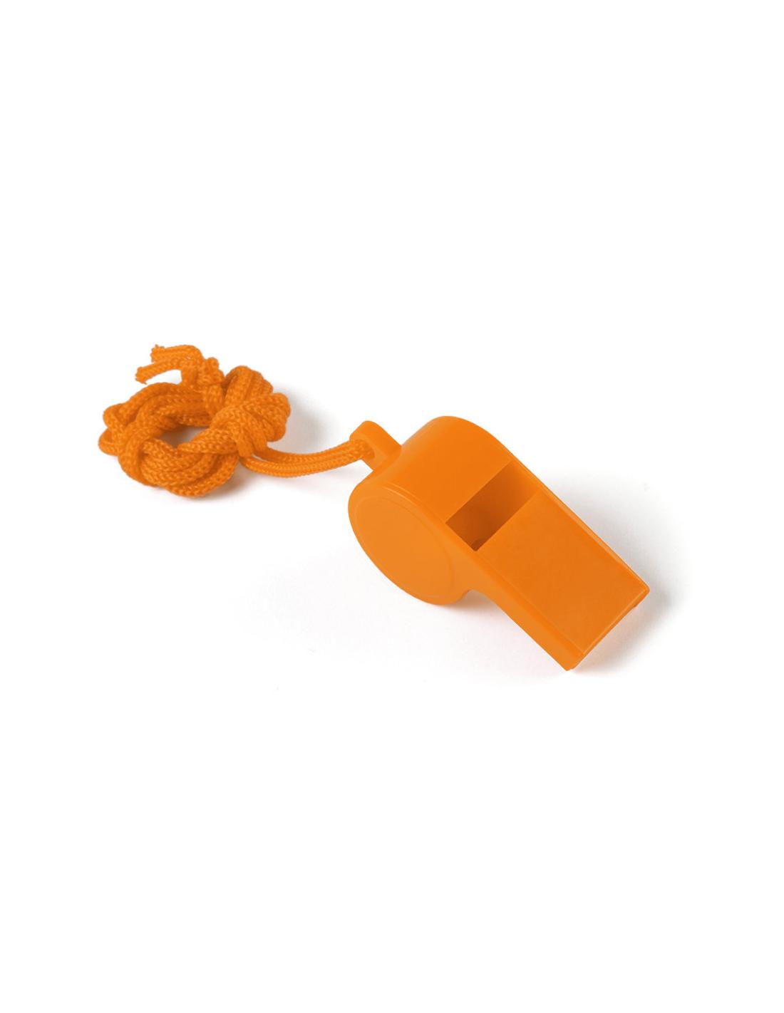 Divertido silbato de clásico diseño en amplia gama de vivos colores con cinta para el cuello a juego.