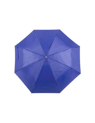 Paraguas plegable de 8 paneles de poliéster 170T en extensa gama de vivos colores y 96cm de diámetro. De apertura manual, con varillas metálicas en color plateado, cierre de velcro y cinta de transporte en mango ergonómico. Presentado en funda individual a juego.