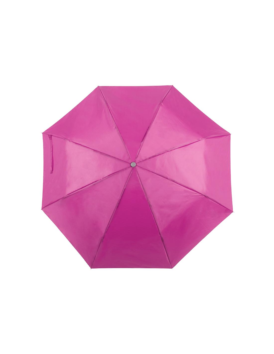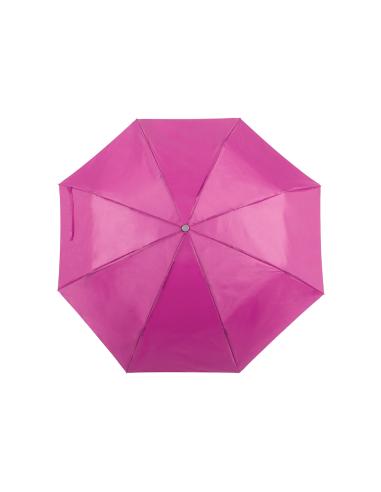 Paraguas plegable de 8 paneles de poliéster 170T en extensa gama de vivos colores y 96cm de diámetro. De apertura manual, con varillas metálicas en color plateado, cierre de velcro y cinta de transporte en mango ergonómico. Presentado en funda individual a juego.
