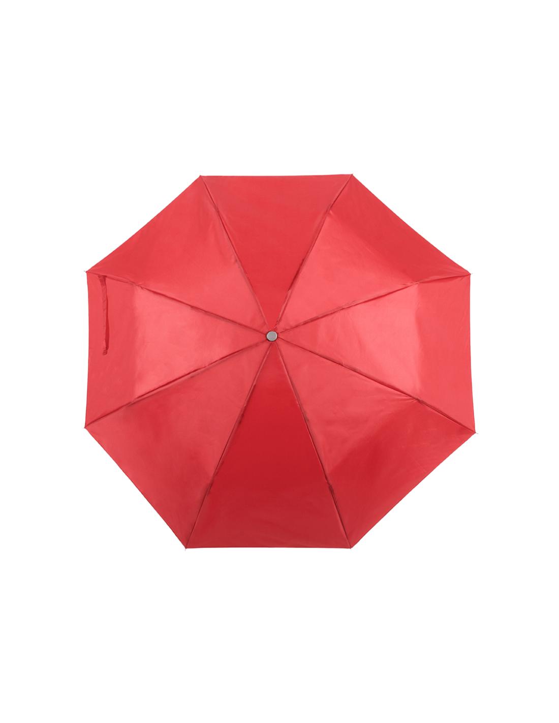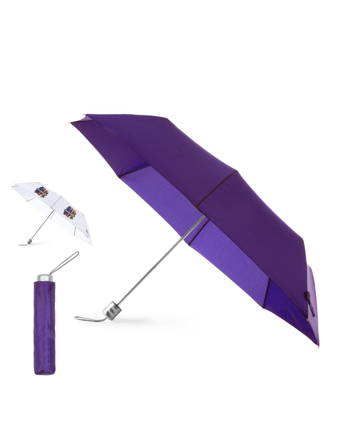 Paraguas plegable de 8 paneles de poliéster 170T en extensa gama de vivos colores y 96cm de diámetro. De apertura manual, con varillas metálicas en color plateado, cierre de velcro y cinta de transporte en mango ergonómico. Presentado en funda individual a juego.