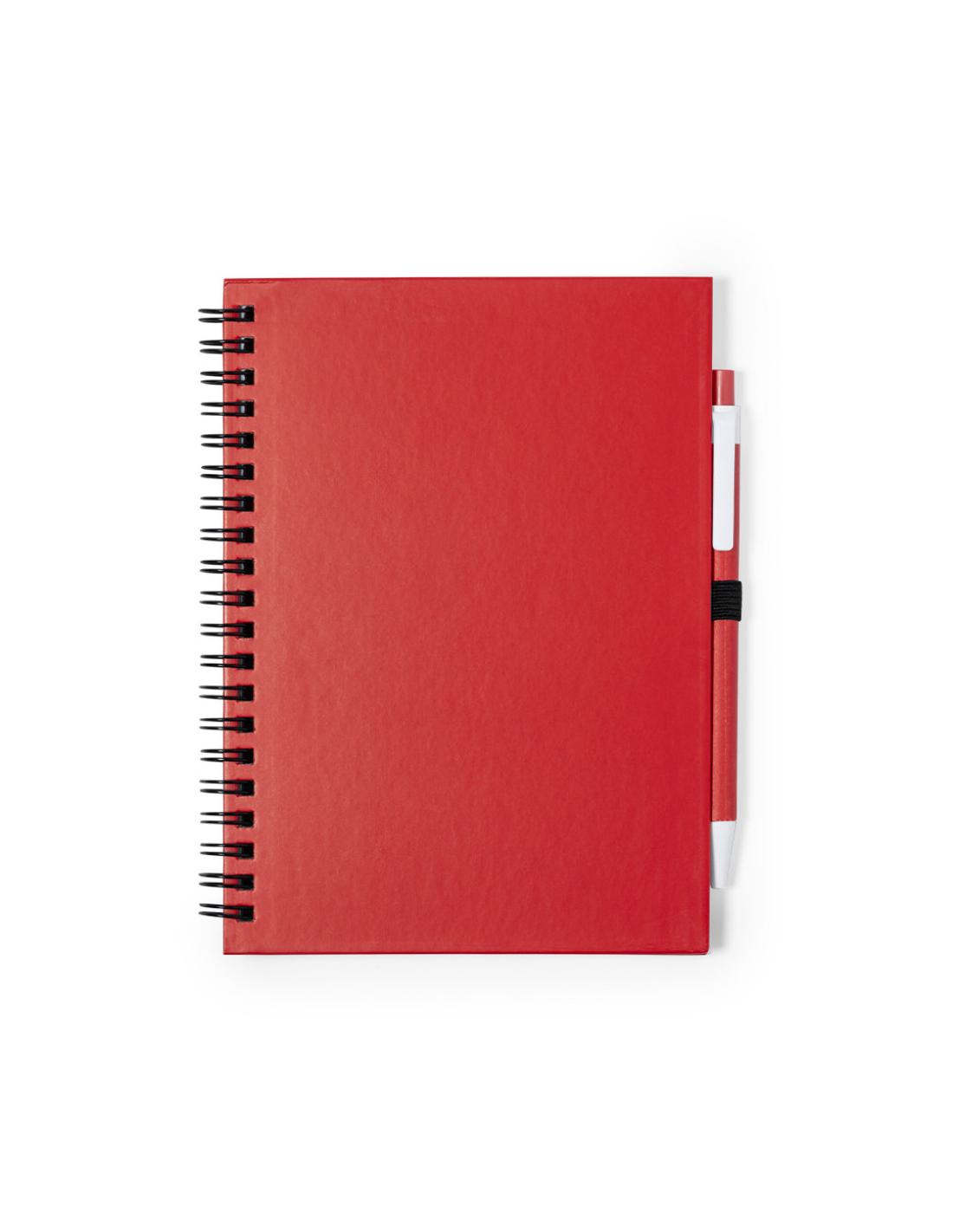 Set de libreta y bolígrafo. Libreta de anillas con tapas de suave tacto fabricado en cartón reciclado, y bolígrafo a juego. Contiene 70 hojas lisas con soporte para bolígrafo. Disponible en una atrevida gama de colores.