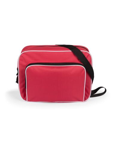Bolso multiusos en resistente poliéster 600D de desenfadado diseño bicolor en amplia gama de colores, con ribetes de refuerzo en color blanco. Compartimento principal y bolsillo exterior con cierre de cremallera en color negro. Con resistente cinta bandolera ajustable en color negro. Base reforzada con superficie antideslizante.