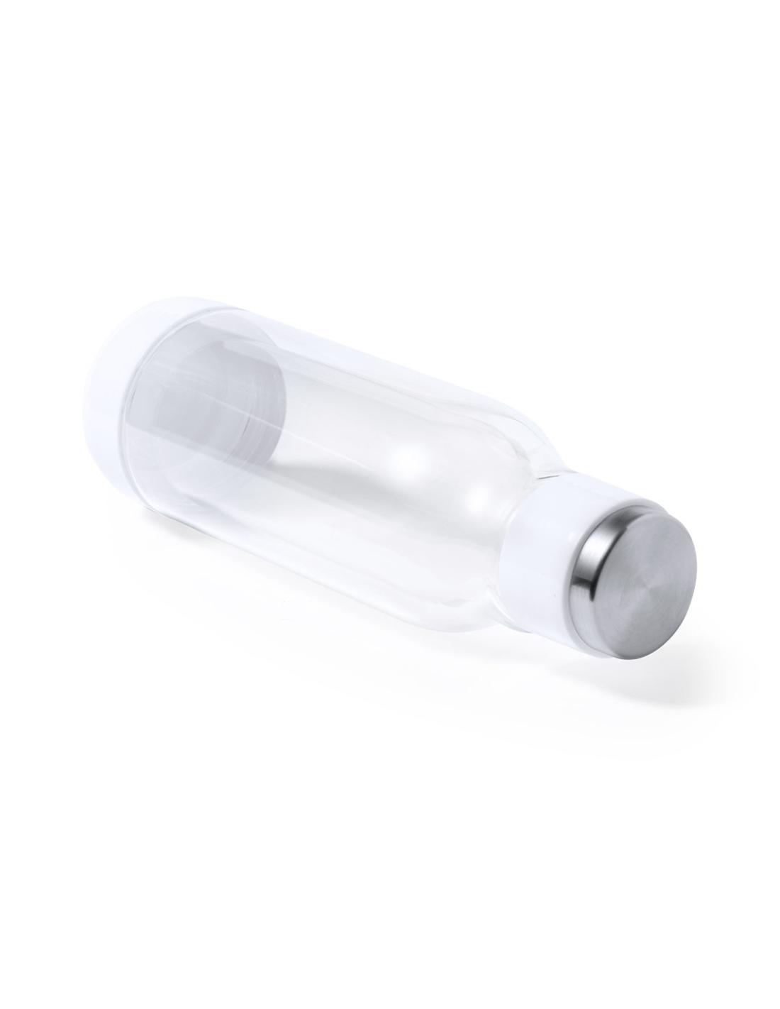 Bidón térmico de doble capa, de original diseño en alta calidad y de 500 ml de capacidad. Fabricado en cristal de borosilicato, que ofrece una resistencia, estética y durabilidad excepcionales, reduciendo así el consumo de productos de usar y tirar. Innovador cuerpo transparente que permite ver el interior en combinación con color blanco, fabricado con materiales de alto poder aislante. Presentado en atractiva caja de diseño.