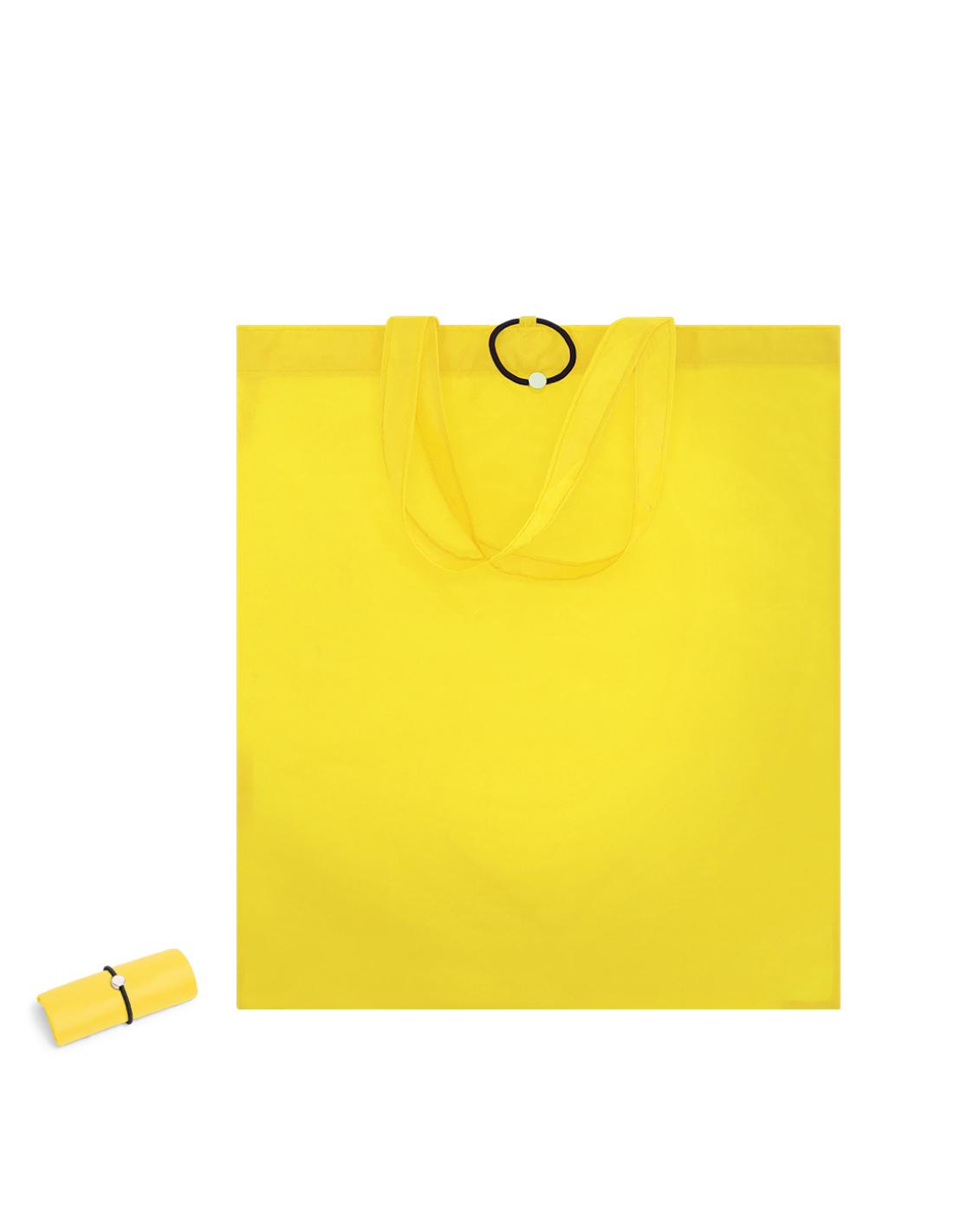 Bolsa plegable en divertidos y variados colores. De suave poliéster 190T, con elástico para plegado y de acabado cosido.