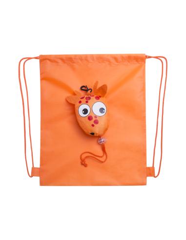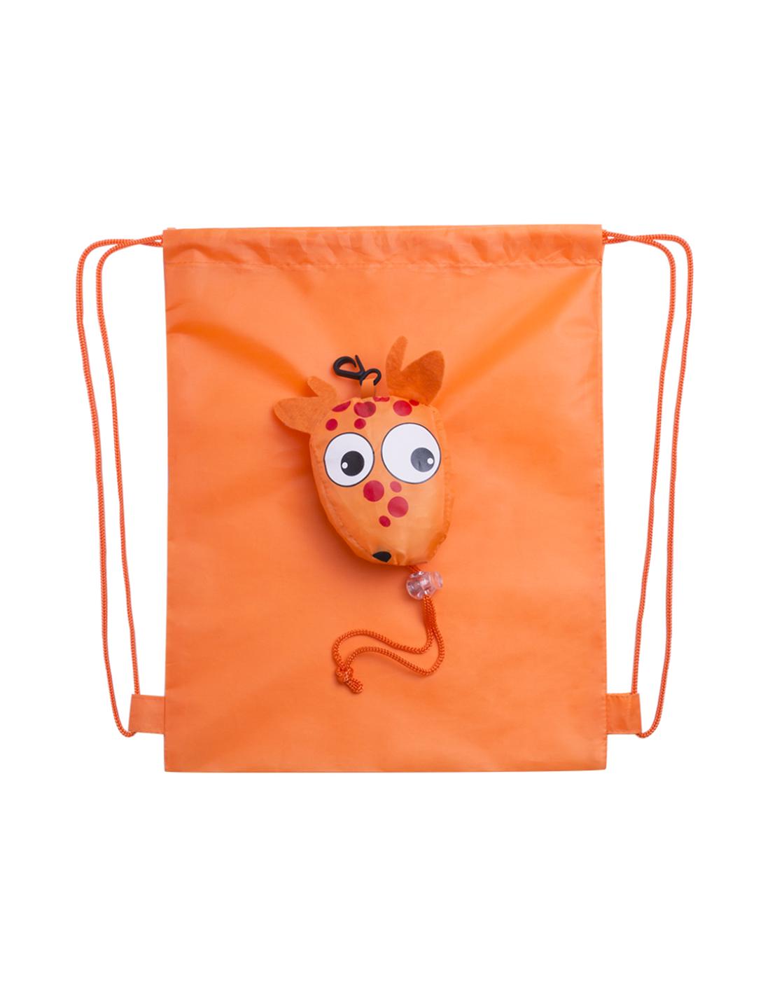 Mochila de cuerdas plegable para niño, en poliéster 190T de alegre diseño de animales y variada gama de colores. Con asa de transporte, cuerdas autocierre y refuerzos laterales a juego. Plegado de pequeño tamaño en forma de animalitos, con cuerda a juego y accesorio de ajuste.