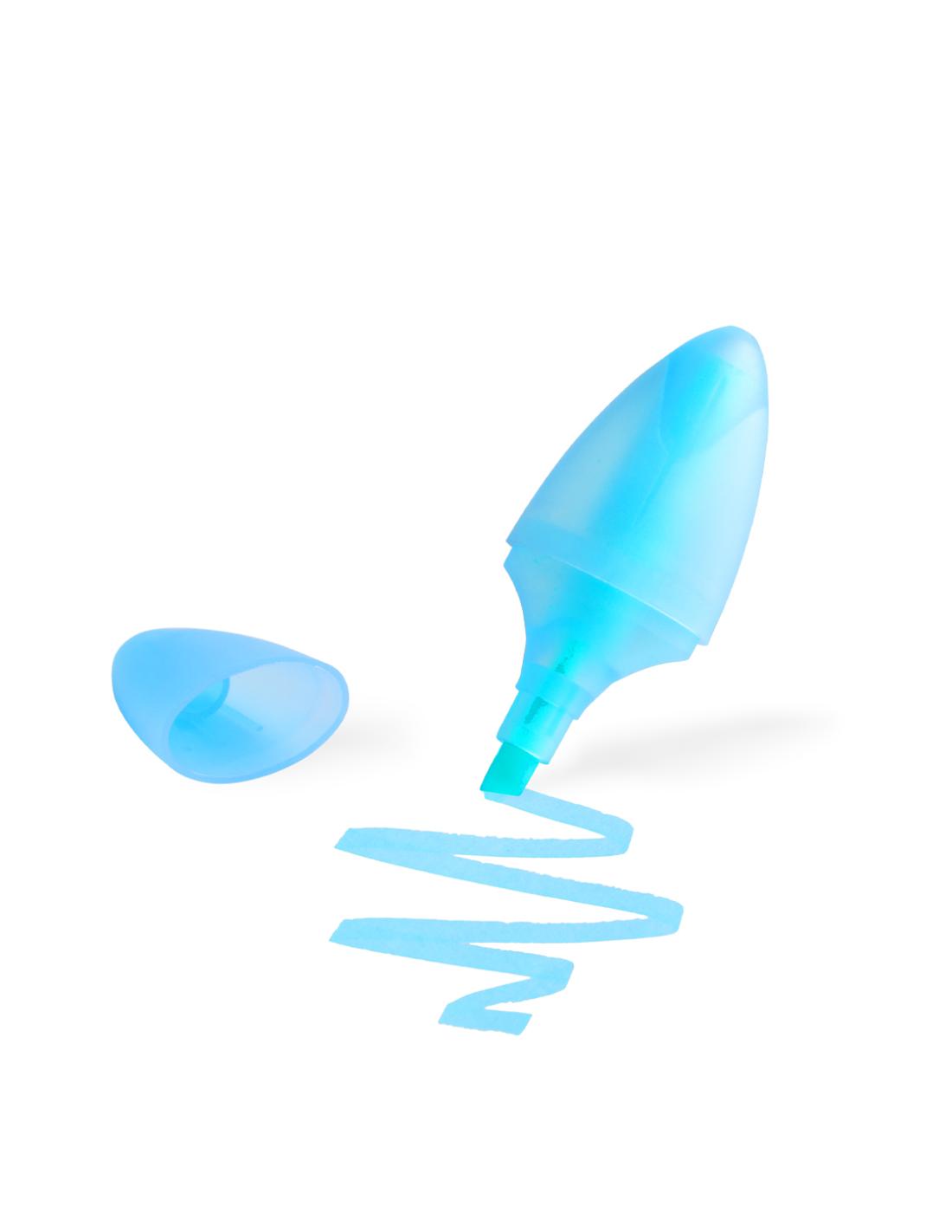 Marcador fluorescente diseño minimalista en divertidos colores, con cuerpo y capucha en acabado translúcido.