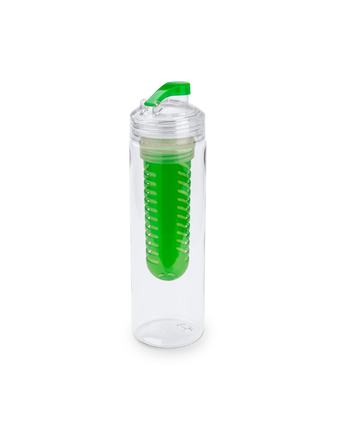 Bidón de 700ml de capacidad en material tritán resistente al calor. Con dosificador de seguridad y tapón a rosca con accesorio enfriador en vivos colores. Presentado en caja individual.