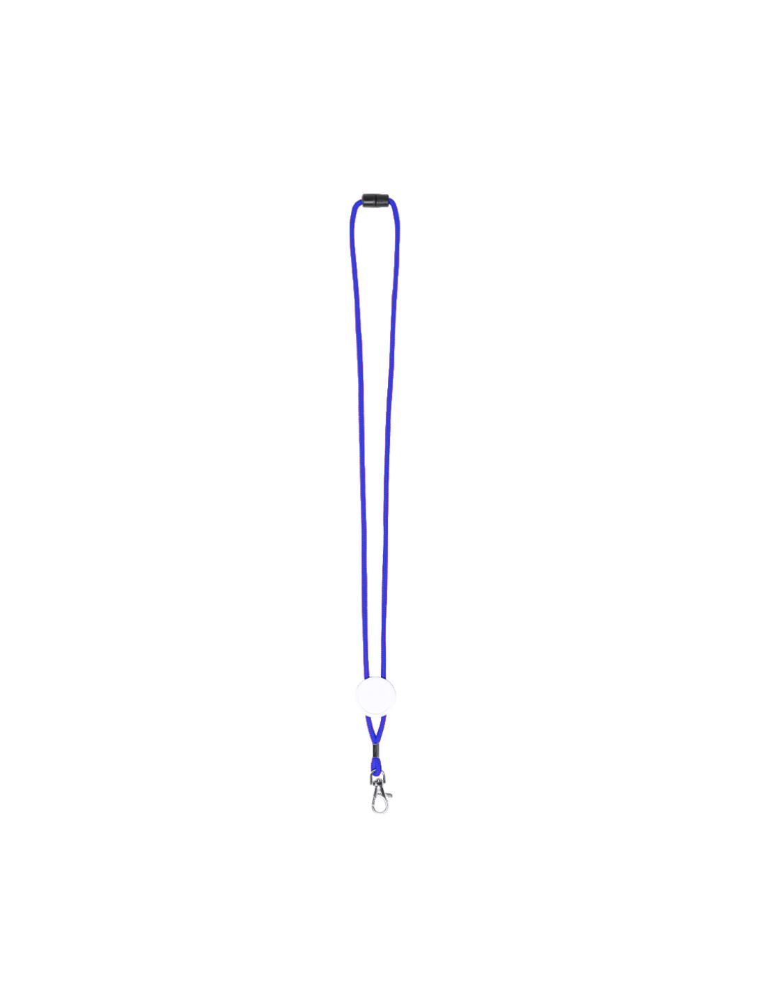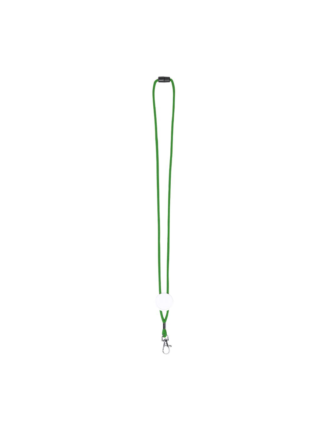 Lanyard en resistente y suave poliéster de cordón en variados y vivos colores. Con cierre de clic desmontable en cuello, accesorio mosquetón metálico y con pastilla central para marcaje