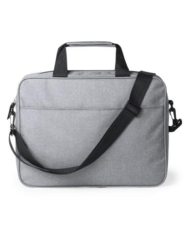 Portadocumentos de cierre de cremallera en elegante poliéster 600D de color gris. Con bolsillo exterior con cierre de velcro, cómodas asas reforzadas, cinta bandolera ajustable con cierre de mosquetón y accesorio en parte trasera para acople en barra de trolley.