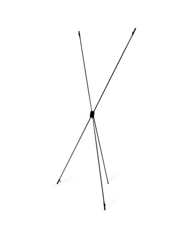 Soporte para panel de impresión X-banner de 60x160cm. Con barras de sujeción extra resistentes en fibra de vidrio. Presentación en funda individual.