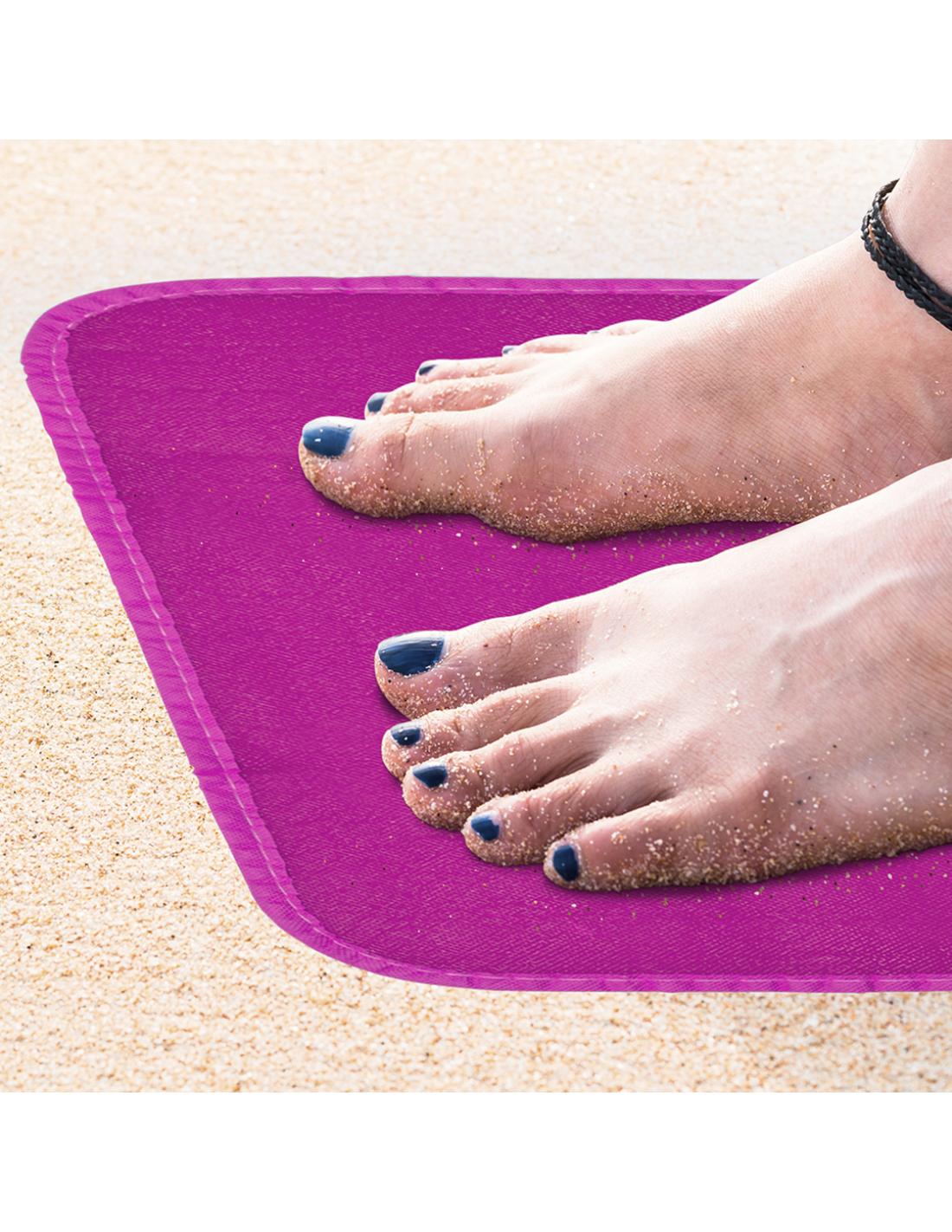 Práctica alfombrilla de PE en vivos colores, diseñada para actividades deportivas y de ocio en las que es necesario cambiarse de calzado y disponer de una superficie limpia de apoyo para los pies.