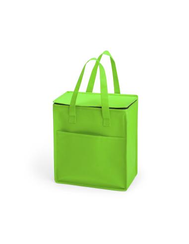 Práctica nevera confeccionada en non-woven con interior de aluminio. Con capacidad de 9,5L y un útil bolsillo exterior, fácil de transportar gracias a sus asas. Tapadera con cierre de cremallera y gran resistencia hasta 5 kg de peso. Disponible en una variada gama de colores.