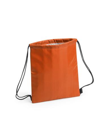 Mochila nevera de cuerdas para niño en suave poliéster 210D de alegres colores y extensa gama de colores. Con cuerdas autocierre en color negro y esquinas con refuerzo. Interior isotermo en acabado de aluminio.