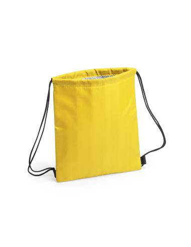 Mochila nevera de cuerdas para niño en suave poliéster 210D de alegres colores y extensa gama de colores. Con cuerdas autocierre en color negro y esquinas con refuerzo. Interior isotermo en acabado de aluminio.