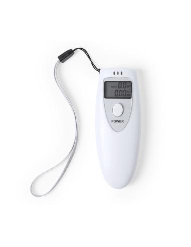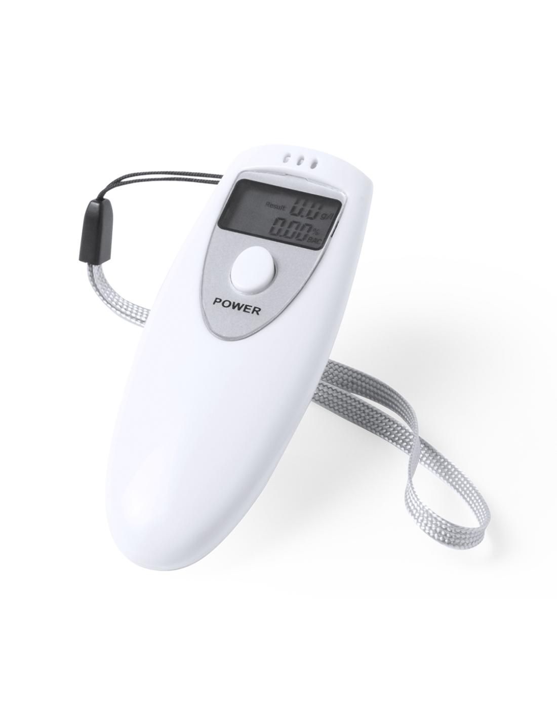 Alcoholímetro de bolsillo con sistema de medición por espiración de aire. Con pantalla LCD integrada y en suave acabado liso de color blanco, especialmente diseñado para impresión en tampografía. Incluye cómoda cinta de transporte. Alimentación a pilas: 2xAAA no incluidas y con manual de uso en inglés y español. Presentado en atractiva caja de diseño.