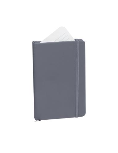 Bloc de notas con tapas de suave tacto, acabado en polipiel y en desenfadados colores. Con 100 hojas de distribución a una raya, elástico de sujeción y marcapáginas de tela a juego.