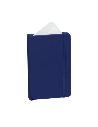 Bloc de notas con tapas de suave tacto, acabado en polipiel y en desenfadados colores. Con 100 hojas de distribución a una raya, elástico de sujeción y marcapáginas de tela a juego.