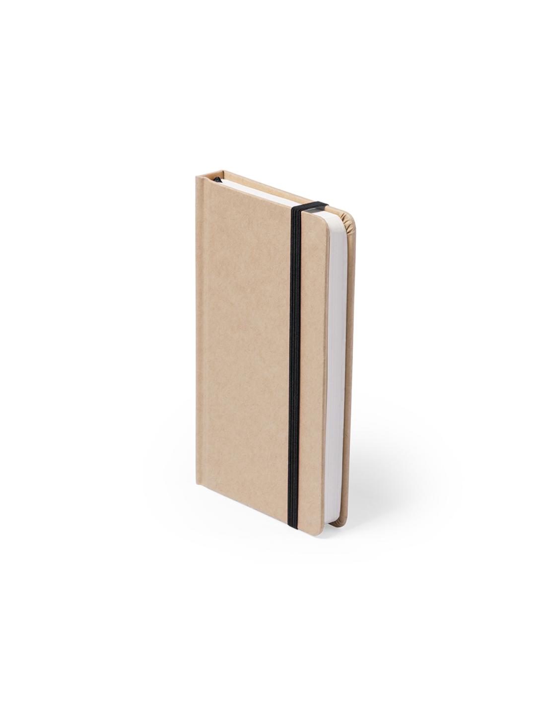 Bloc de notas con tapas de suave tacto acabadas en resistente cartón natural. De 100 hojas lisas, con elástico de sujeción y marcapáginas de tela a juego.