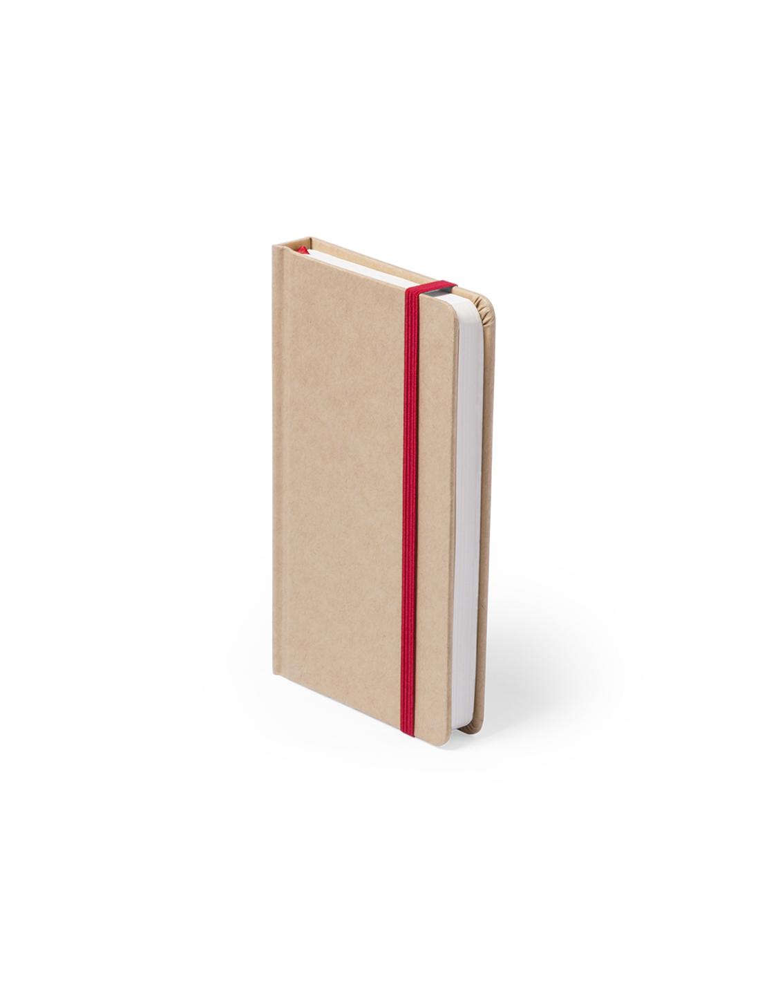 Bloc de notas con tapas de suave tacto acabadas en resistente cartón natural. De 100 hojas lisas, con elástico de sujeción y marcapáginas de tela a juego.