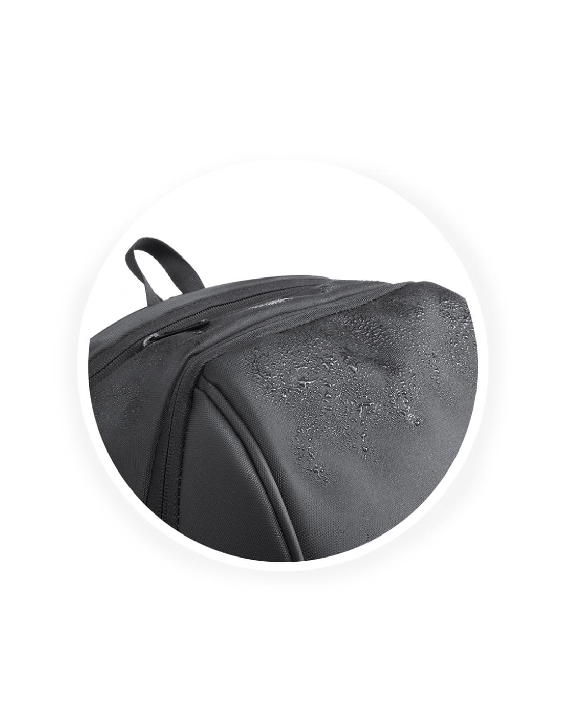 Elegante mochila de negocios resistente al agua en nylon de alta calidad. Con compartimento interior con salida USB para conexión de powerbank -no incluido-, incluye cable micro USB de 1 metro de largo para total comodidad en la carga de cualquier dispositivo móvil. Con compartimento interior acolchado para ordenador portátil de hasta 15 pulgadas y multitud de bolsillos interiores y exteriores. Cintas de hombros y espalda con acolchado ergonómico.