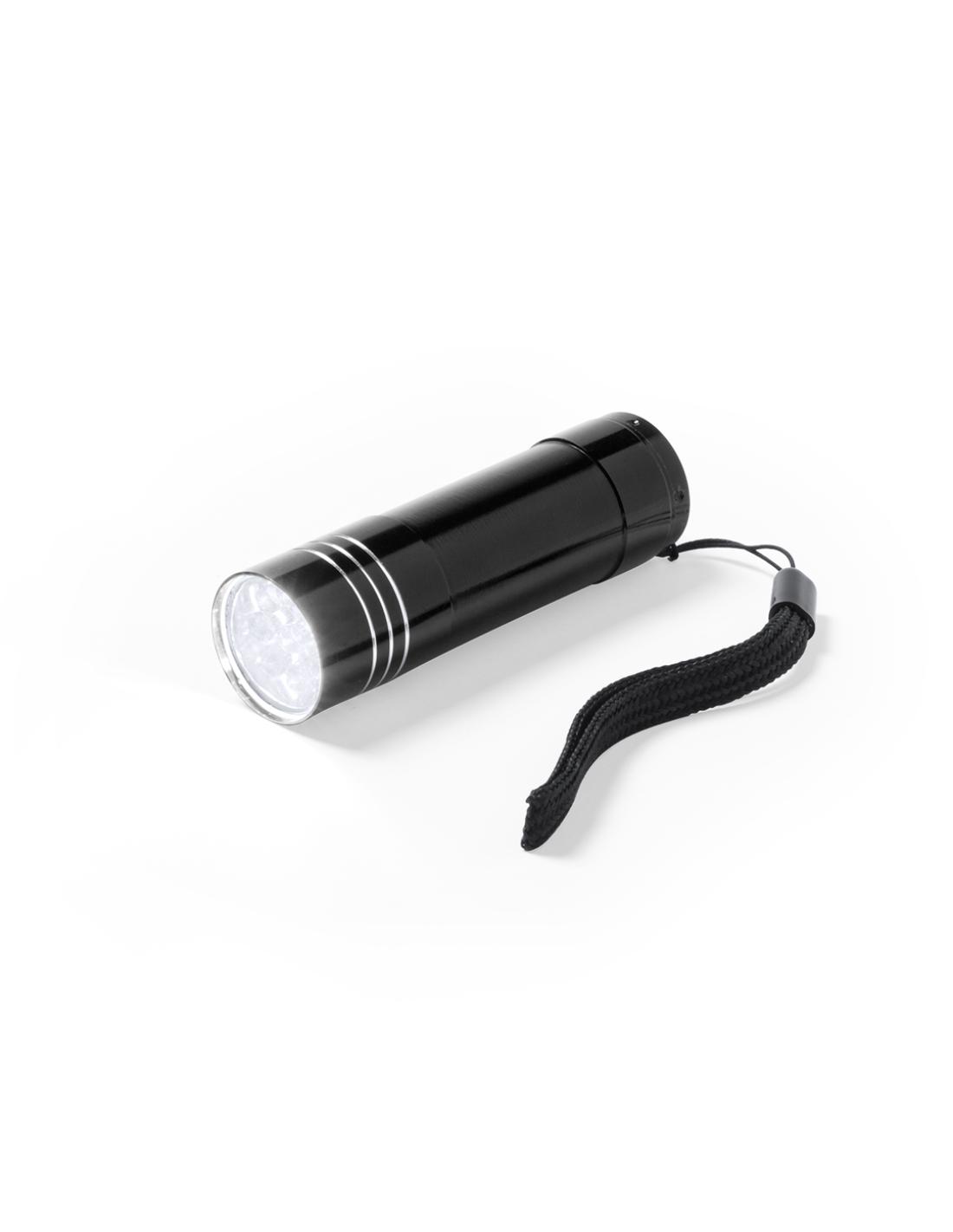 Linterna de 9 ledes de alto poder de iluminación. Con resistente cuerpo en aluminio, pulsador protegido con recubrimiento de resistente goma y cinta de transporte. Alimentación a pilas: 3xAAA no incluidas. Presentada en caja individual.