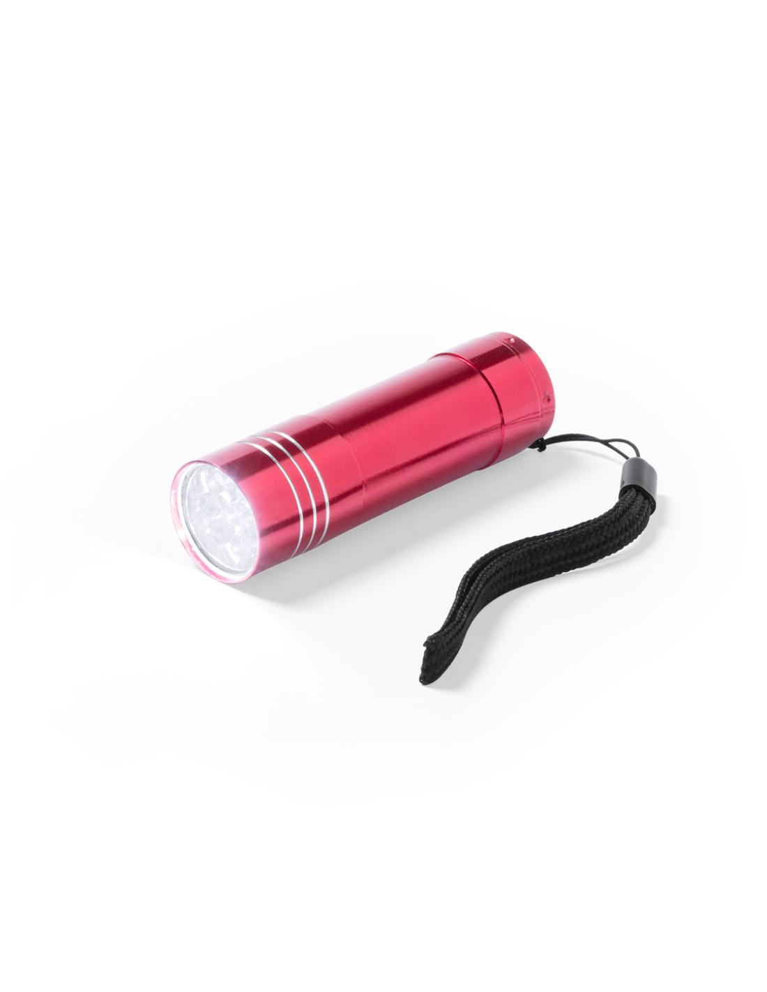 Linterna de 9 ledes de alto poder de iluminación. Con resistente cuerpo en aluminio, pulsador protegido con recubrimiento de resistente goma y cinta de transporte. Alimentación a pilas: 3xAAA no incluidas. Presentada en caja individual.