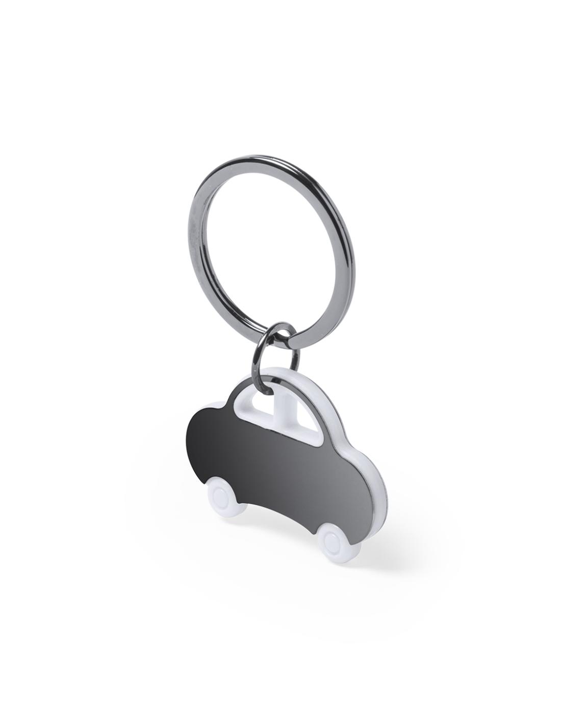 Llavero coche de diseño bicolor con cuerpo de acero inox en variada combinación de colores.
