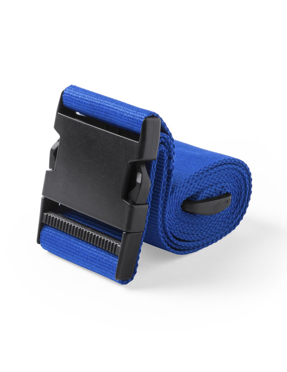 Cinta para maletas de 180cm en resistente poliéster de acabado en vivos colores. Con cierre de clic y accesorio de ajuste.