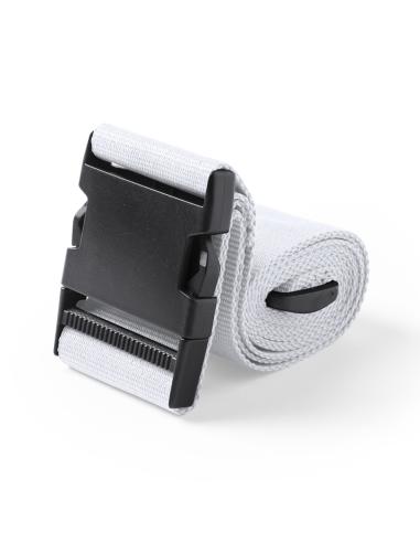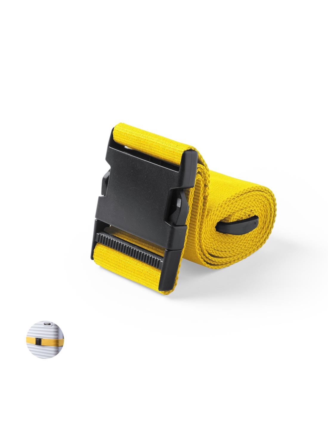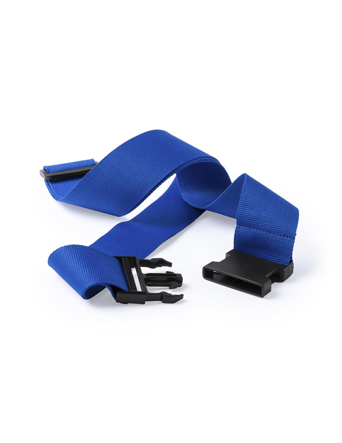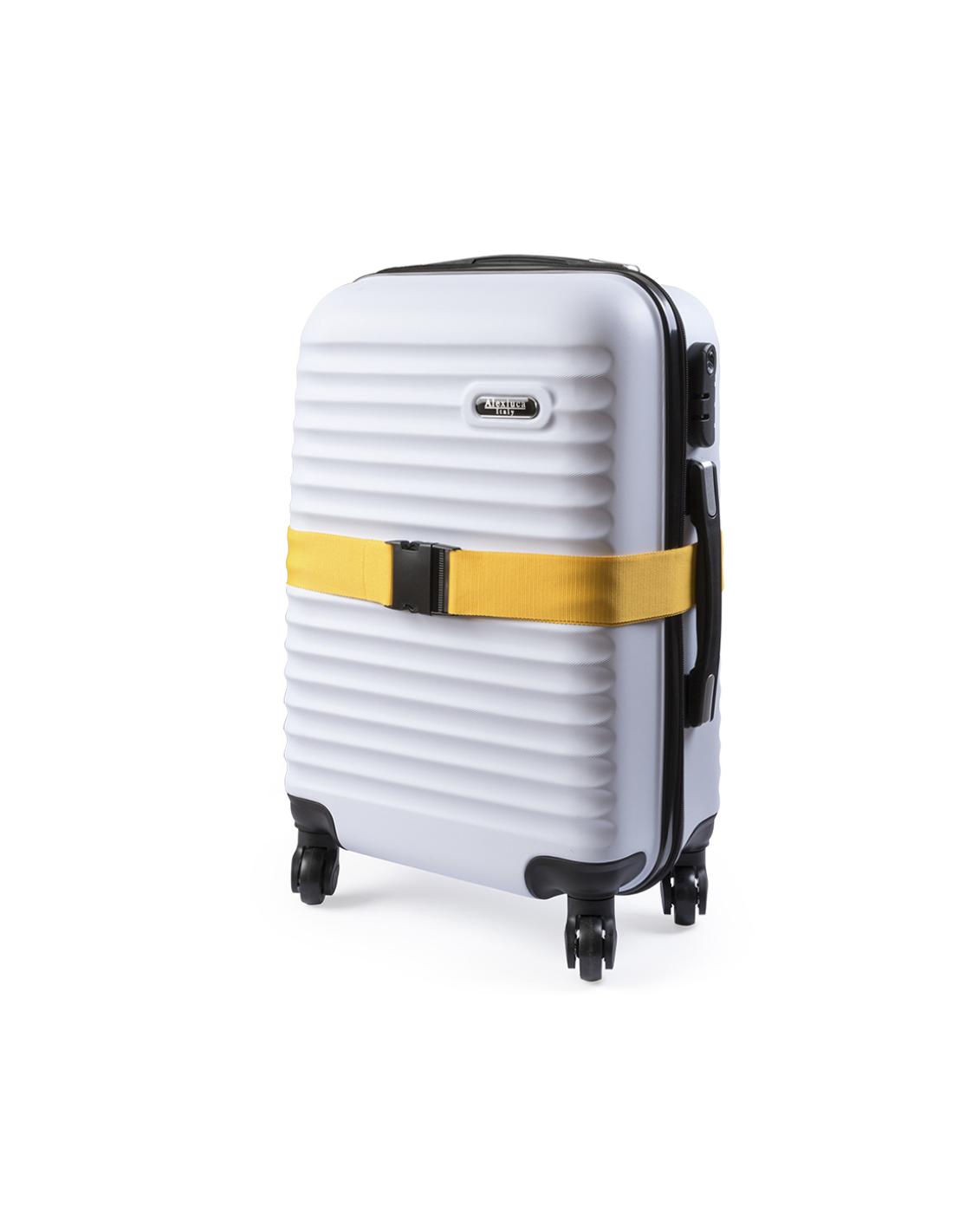 Cinta para maletas de 180cm en resistente poliéster de acabado en vivos colores. Con cierre de clic y accesorio de ajuste.
