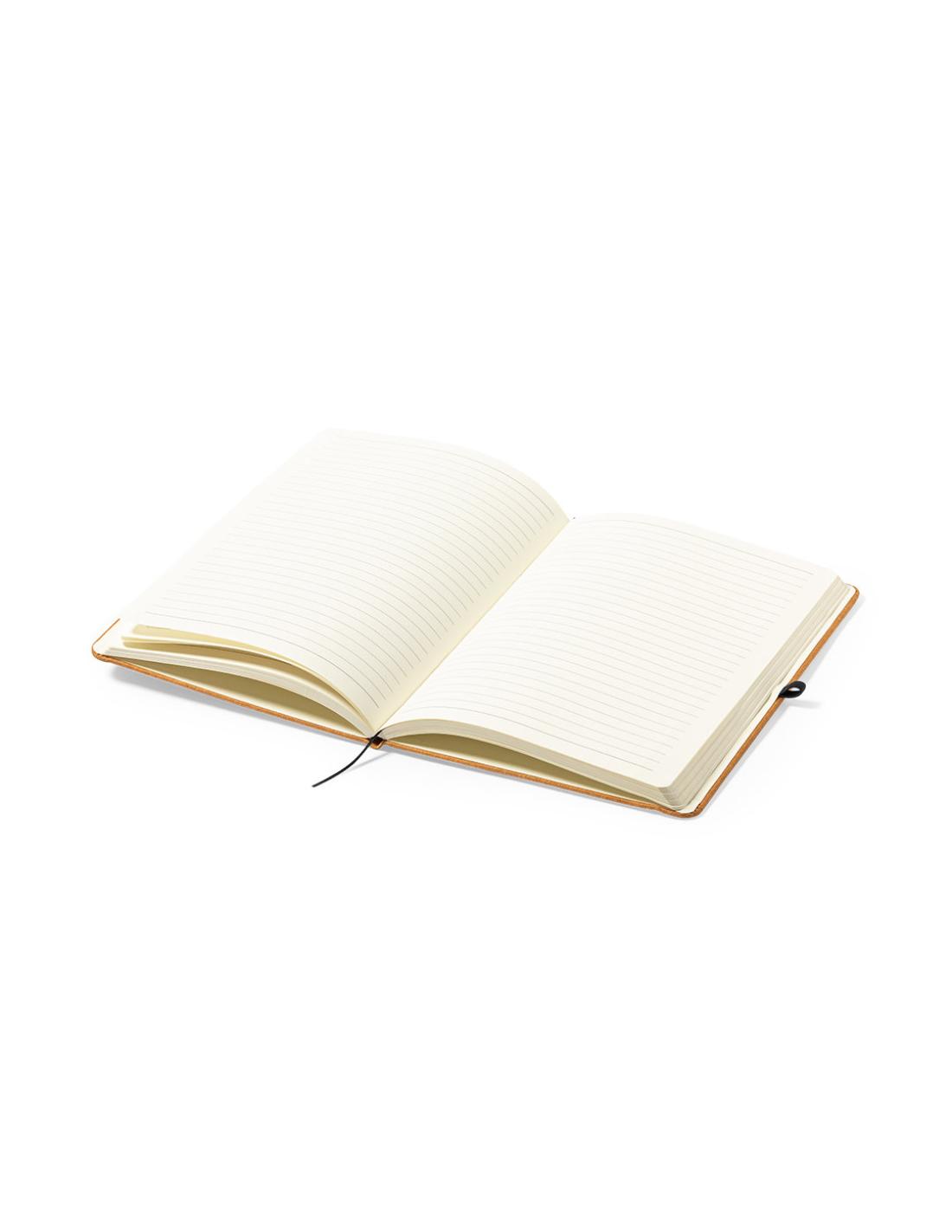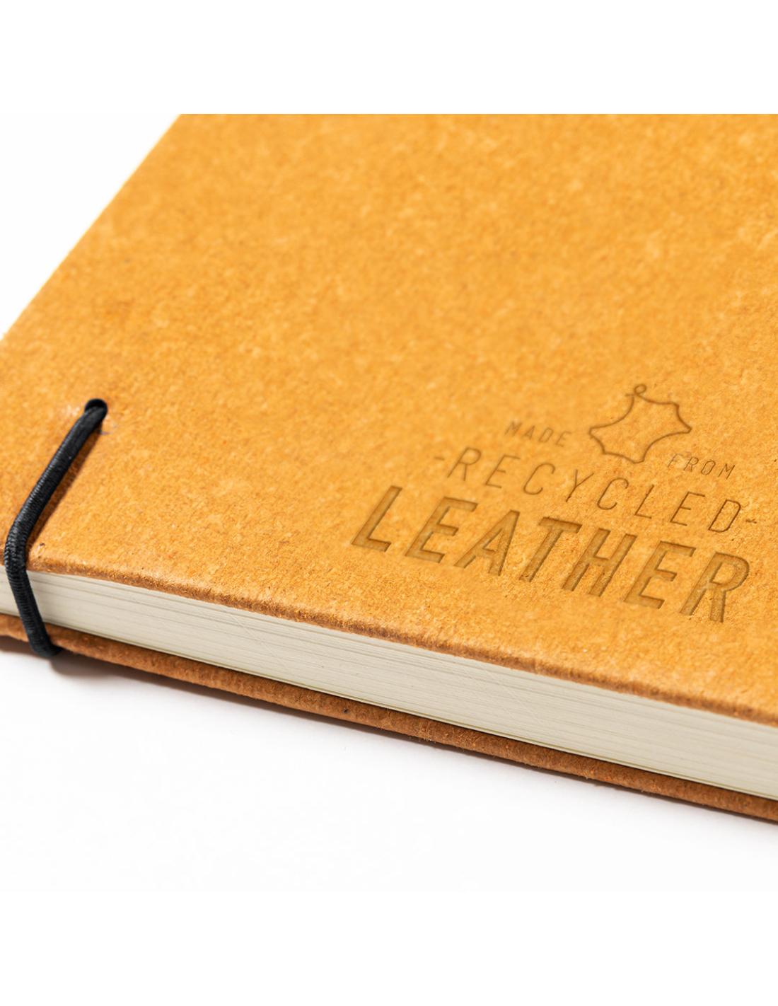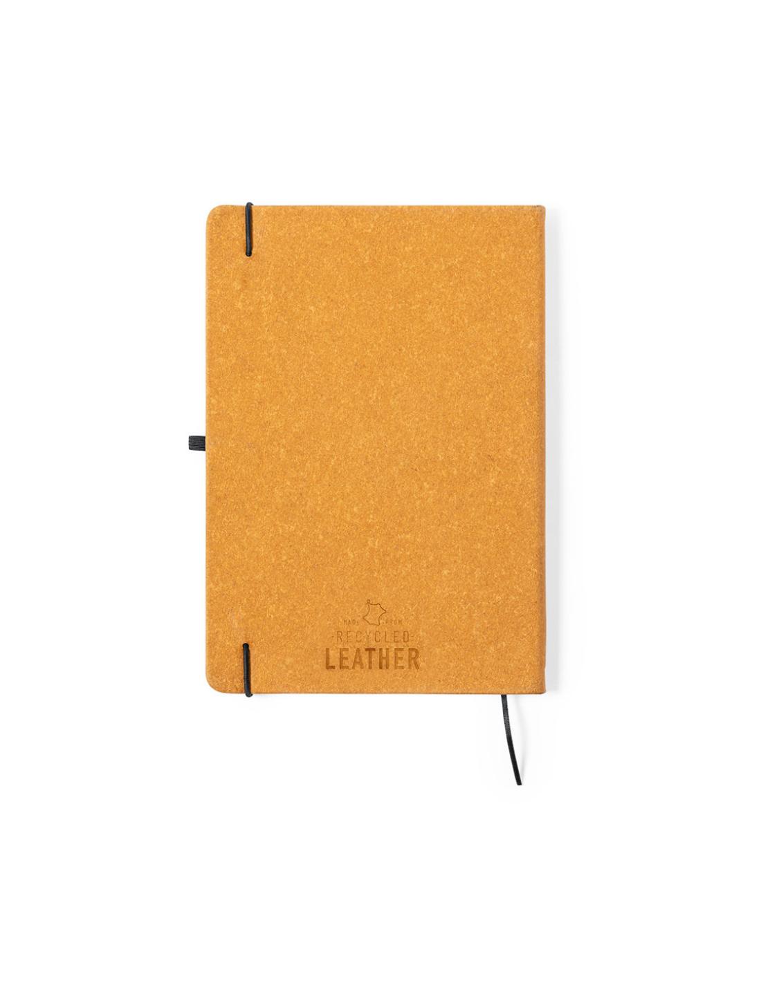 Bloc de notas de línea nature. Con tapas rígidas fabricadas en cuero reciclado, que rescata las fibras desechadas en los procesos de fabricación, minimizando el desperdicio de material, contribuyendo a reducir el impacto ambiental y manteniendo a la vez sus propiedades originales. Interior con 100 hojas de disposición a una raya. Incluye marcapáginas, elástico de cierre y soporte para bolígrafo a juego. Incluye distintivo cuero reciclado.