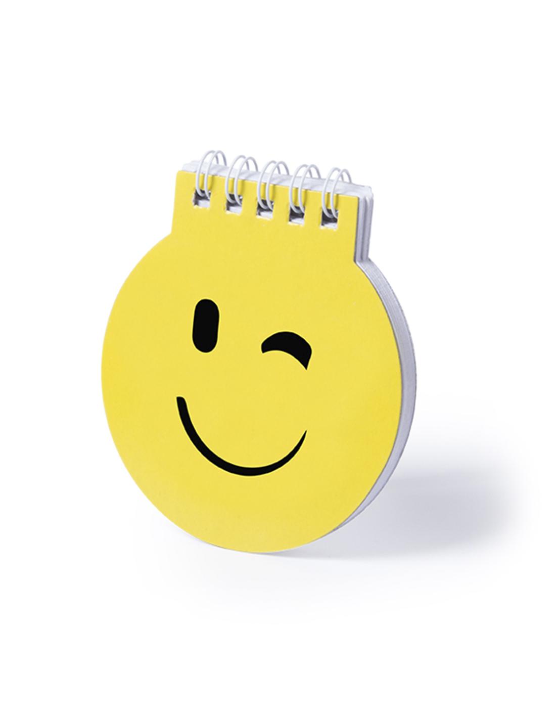 Libreta de divertidos diseños emoji en llamativo color amarillo. De anillas blancas, con tapas de cartón rígidas de suave acabado brillante y 40 hojas lisas.