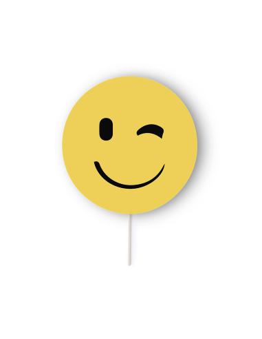 Selfie Pai Pai en divertidos diseños emoji y llamativo color amarillo. En papel de alto gramaje y con mango de madera. Disponible en diseños corazón, gafas de sol, guiño y sonrisa.