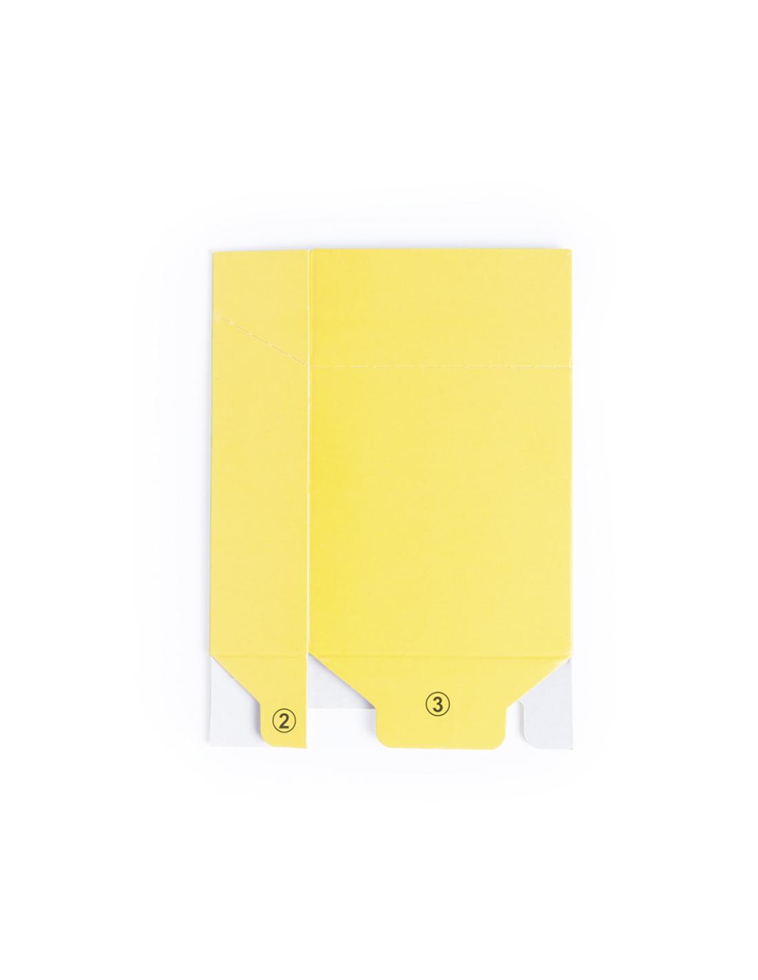 Funda para cajetilla de tabaco de divertidos diseños emoji en llamativo color amarillo. En cartón de acabado brillo con emoji en parte trasera y presentación plegada.