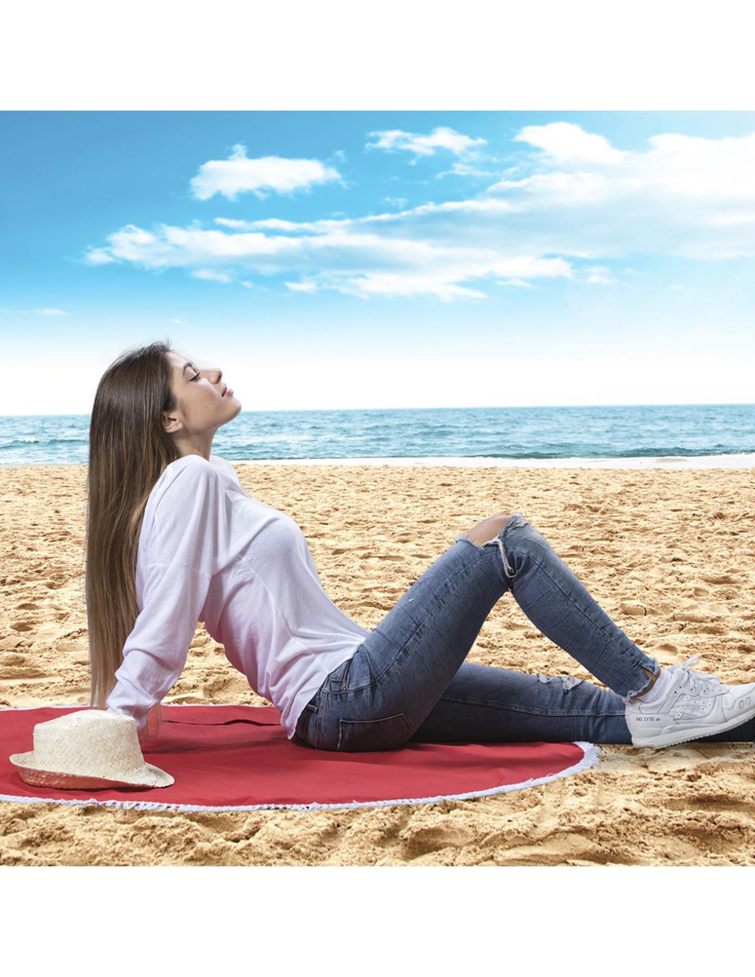 Esterilla en material 100% algodón de 125g/m2 en original diseño circular de vivos colores y terminación en flecos.