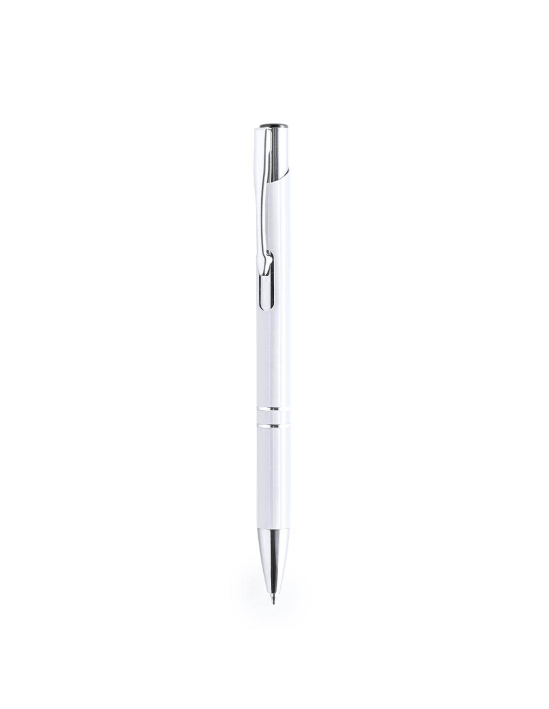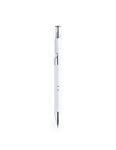 Original bolígrafo de mecanismo pulsador en elegante diseño bicolor. Con cuerpo troquelado en aluminio de suave acabado en variados colores. Original clip, anillas y punta en plateado. De cartucho jumbo y tinta azul.