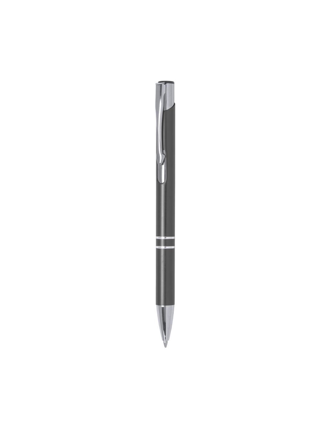 Original bolígrafo de mecanismo pulsador en elegante diseño bicolor. Con cuerpo troquelado en aluminio de suave acabado en variados colores. Original clip, anillas y punta en plateado. De cartucho jumbo y tinta azul.