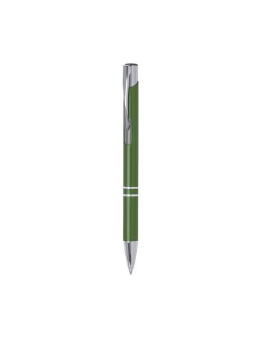 Original bolígrafo de mecanismo pulsador en elegante diseño bicolor. Con cuerpo troquelado en aluminio de suave acabado en variados colores. Original clip, anillas y punta en plateado. De cartucho jumbo y tinta azul.