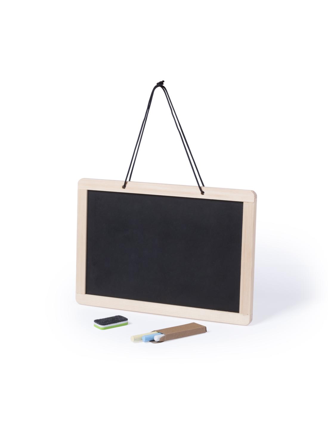 Pizarra para colgar de doble cara. Tradicional pizarra de tiza en una cara con 3 tizas incluidas + pizarra para rotulador en la otra cara -rotulador incluido-. Con borrador de doble cara para tiza o rotulador.