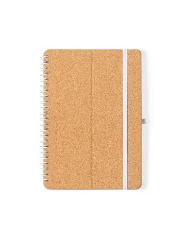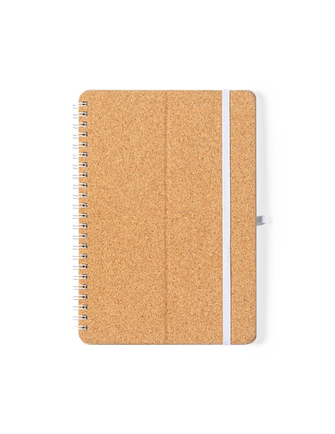 Libreta soporte de anillas de línea nature. Tapas rígidas fabricadas en corcho natural, con original soporte en caña de trigo para smartphone y tablet. Incluye elástico de cierre y soporte para bolígrafo en color blanco. 70 hojas interiores con disposición a una raya. Presentada en bolsa individual de diseño.