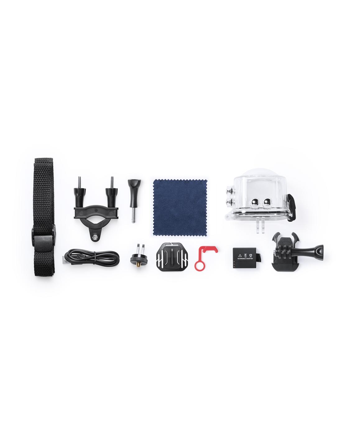 Cámara deportiva 360° de alta calidad de captura de vídeo HD 2448p, de diseño compacto y resistente, especialmente diseñada para uso intensivo. Incluye carcasa sumergible y multitud de accesorios para ajuste en casco, manillar o cinturón, así como correas ajustables para cabeza y torso. La versatilidad y resistencia de esta cámara deportiva la convierten en el gadget perfecto para capturar, con una calidad excepcional, cualquier actividad deportiva o de ocio en 360°. Con función Wi-fi, cámara de fotos Full HD 1080p, ranura para tarjetas micro USB de hasta 64 GB de capacidad, pantalla LCD de 0,96 pulgadas, sistema multilenguaje, y recargable mediante cable mini USB -incluido-. Presentada en atractiva caja de diseño.
