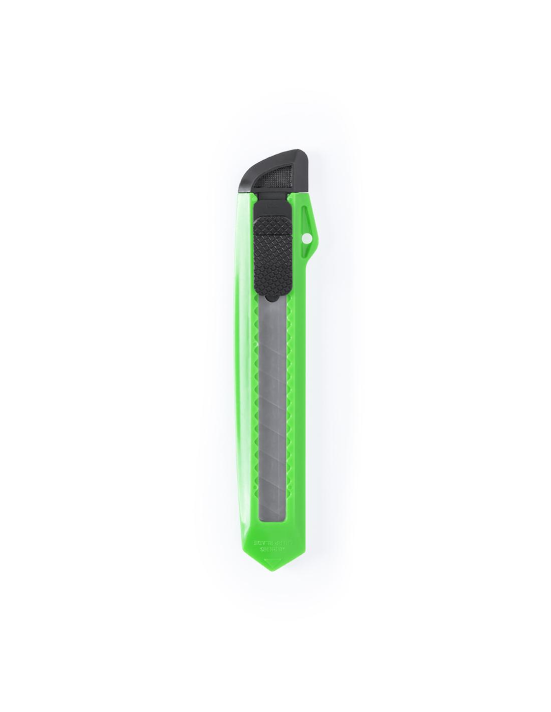 Cutter con cuchilla ancha y mango ergonómico troquelado. Capucha extraíble para ajuste de corte de cuchilla.