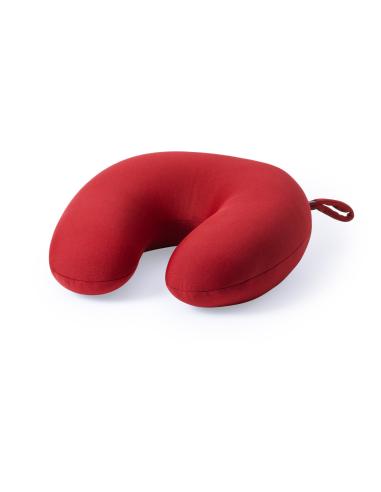 Almohadilla para cuello con cuerpo de suave acabado en poliéster en amplia gama de vivos colores. Con relleno de bolitas y cinta de transporte.