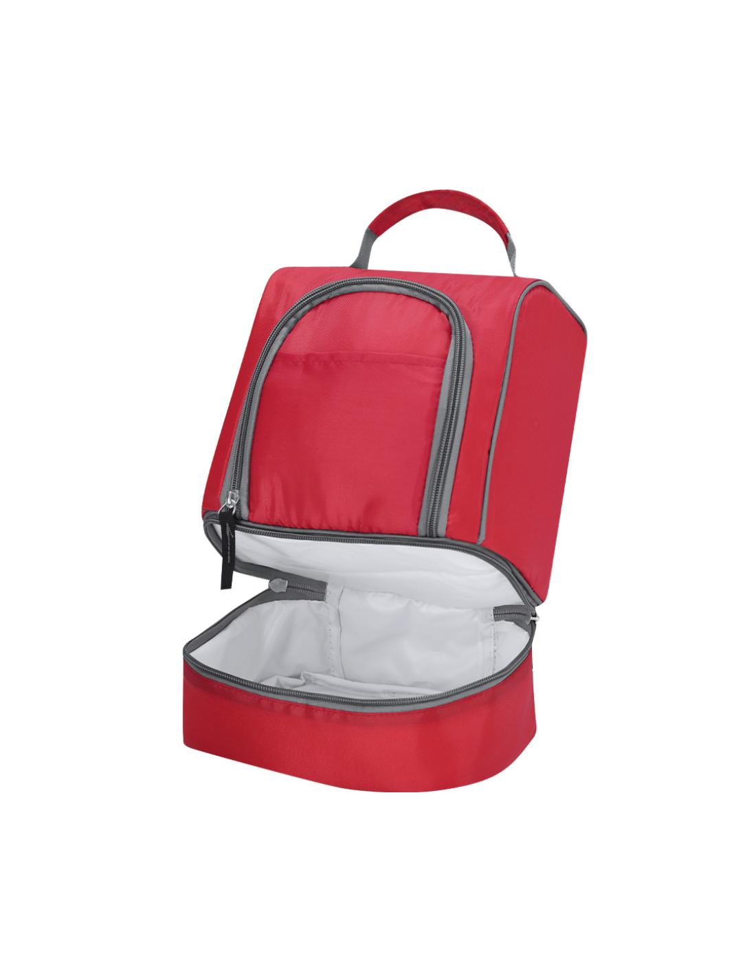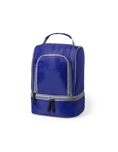 Nevera todoterreno en poliéster 210D de vivos colores y con dos compartimentos independientes con cierre de cremallera. Con bolsillo frontales, uno de ellos con cremallera, e interior isotermo en acabado PEVA. Práctica asa de transporte reforzada a juego.